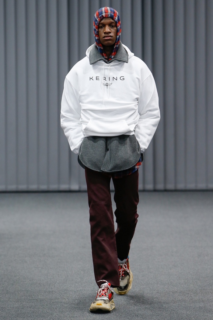 根据官方解释,Balenciaga随其母集团Kering Group(开云集团)的总部办公地点在去年9月搬迁至位于巴黎一座曾名为Laennec Hospital的17世纪建筑物一事,促成Demna Gvasalia定下这个主题——这也是为什么你会看到那些印有Kering字样的兜帽卫衣出现的原因。