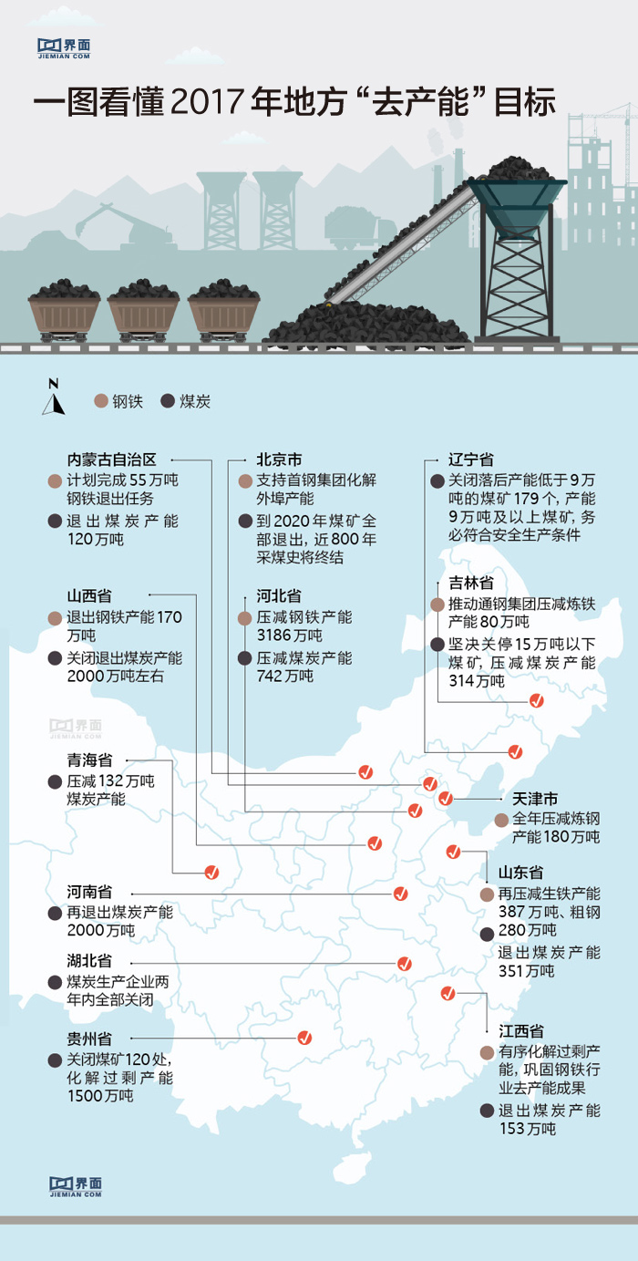 尽管目前全国钢铁、煤炭“去产能”方案尚未出台,但地方“两会”相继召开,多省份在总结2016年去产能工作的基础上,明确了2017年钢铁和煤炭的去产能目标。