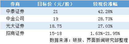 部分券商标出的目标价