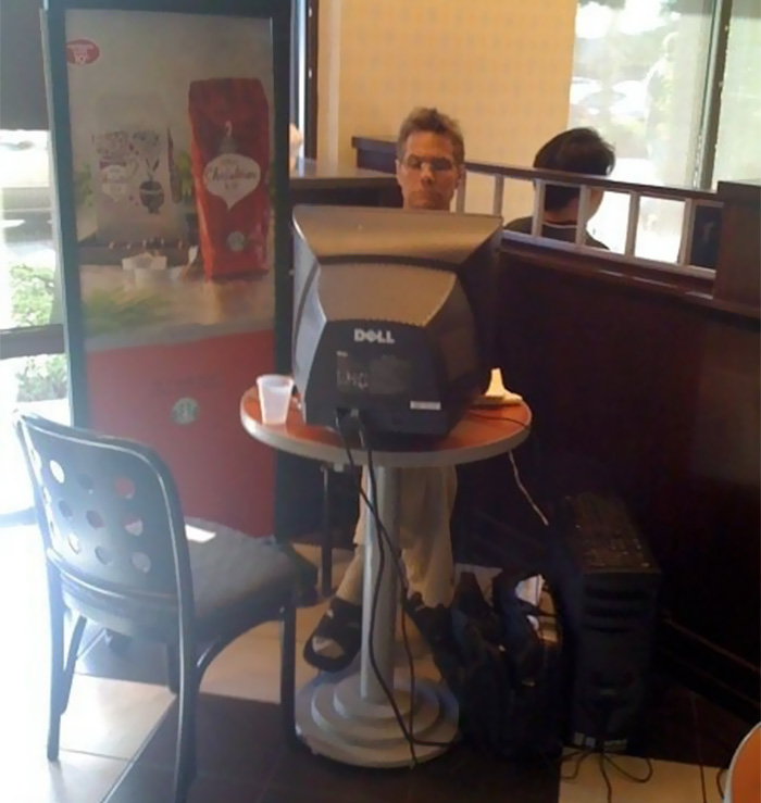 带爸爸去星巴克,秒杀清一色的苹果笔记本。