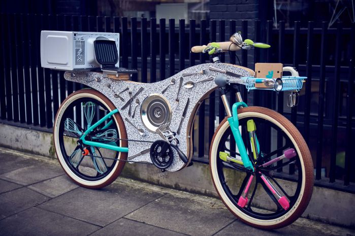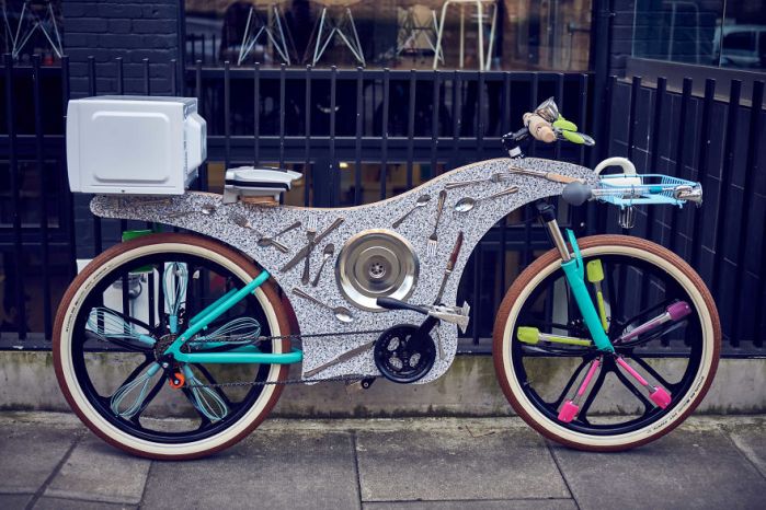 据说,英国平均每个厨房中闲置的厨具价值达267英镑,这或许可以解释,为什么外卖平台Deliveroo要以下面这种超现实的方式,赋予厨具们新生,顺便解放厨房有限的存储空间——把他们变成自行车!