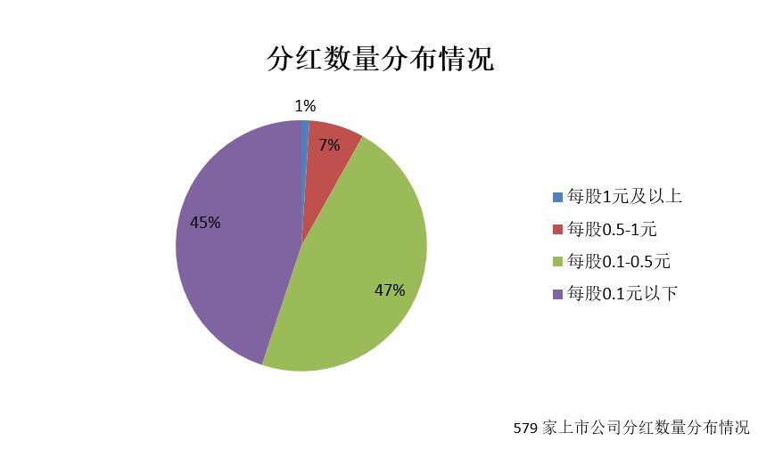 随着上市公司年报披露逐渐进入密集期,派发“红包”的上市公司也逐步浮出水面。据Wind数据显示,截止到2017年3月24日,共有580家上市公司发布了分红预案,每股分红大于1元的公司共有6家,0.5元至1元的有41家,0.1元至0.5元以及0.1元以下的分别为272家和261家。