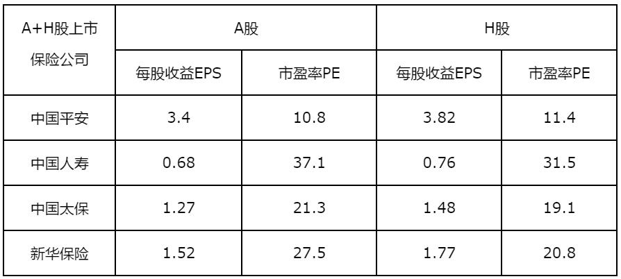 在界面新闻记者梳理的A+H股上市保险公司中,虽然每股收益(EPS)高于其余三家国有控股上市保险公司,但中国平安的市盈率远远低于后几者。中国平安总经理任汇川在业绩发布会上也公开表示:“一是平安大概是A股股价比H股股价低的极少数公司之一;二是市值和内含价值相比也有一个超过10%的折扣,”他认为,“这是两个很有意思的指标。”