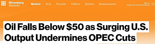 【油价跌破每桶50美元 美国出口剧增抵消OPEC减产】由于投资者不再相信石油输出国组织(OPEC)主导的减产能抵消美国石油生产增加的影响,石油价格跌破每桶50美元。本周纽约近月交割的石油期货下跌幅度超过7%,而美国的石油生产则达到2015年8月以来的最高水平。