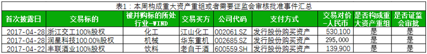 注:上述并购重组事件均是站在收购方角度观察,不考虑上市公司重大资产出售