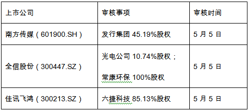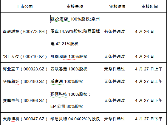 截至4月28日,中国证监会并购重组委员会安排5月2日-5日的重组审核事宜如下: