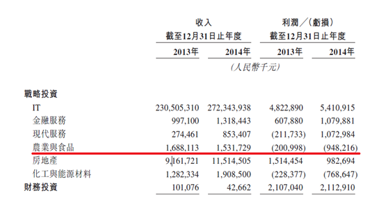 香港上市的联想控股可以提供关于亏损的部分线索(据2014年底数据,白酒业务占农业与食品业务的比重超过70%)。