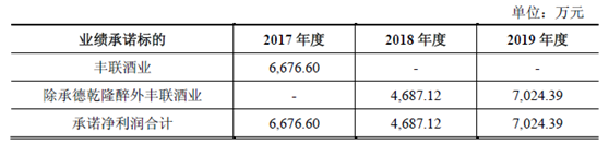 丰联酒业的股东佳沃集团、君和聚力承诺2017年至2019年的净利润完成情况如下: