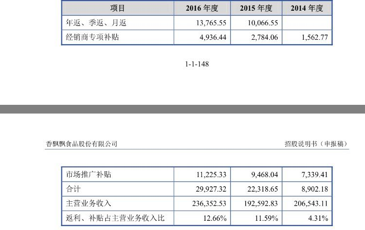 根据招股书,2016年,香飘飘卖出了3947.87万箱奶茶,每箱有30杯,共计11亿杯奶茶。这也成为公司主打口号。但这背后,却是2016年公司高达2.99亿元返利补贴。2014年-2016年公司累计返利补贴高达6.11亿元,如此高额补贴是否能持久,也成为市场关注焦点。