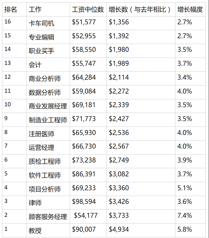 以下为美国前16个“工资高,涨幅大”的工作: