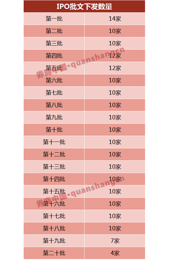 从上述流程来看,前面的受理、反馈会、见面会、预先披露更新,都属发行人、保荐机构和证监会发行部的日常审核程序,节奏完全由发行人准备快慢决定,而只有发审会和最终的下发批文环节,由证监会确定,可快可慢,可多可少,是调节新股发行速度的主要环节。