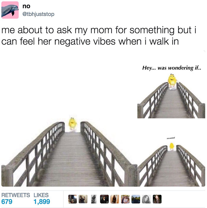 “当我想问我妈要点什么东西但一进门感受到她气场不对的时候。”