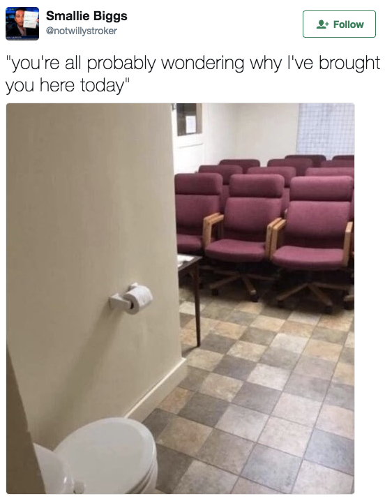 最近一张神秘的照片在推上走红,画面中显示了一个会议厅一样的东西,只不过角落里安放了一个马桶。