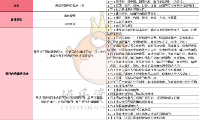 据娱乐资本论了解,因为此次发布的中国网络视听节目服务协会只是官方机构下辖的一个协会,所以大家才会非常紧张。但正式的规定仍得参照官方今年6月1日印发的《关于进一步加强网络视听节目创作播出管理的通知》。