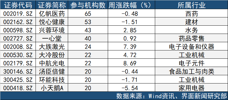 本周十大机构调研股