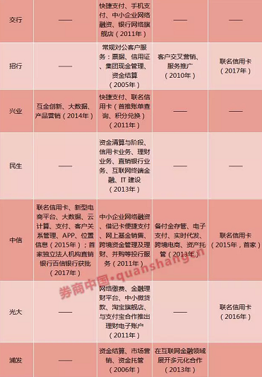 这一阶段,银行对互联网巨头的渠道价值认知加深,于是不再将其简单视作普通公司业务客户,而是开始尝试借助其海量客户为自身揽客。于是,银行开启了淘宝旗舰店等网络销售模式,并发起联名信用卡等业务尝试从网络渠道获客。