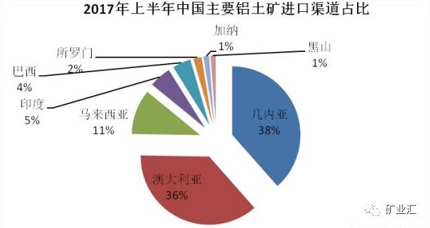 上半年,中国进口马来西亚、印度和巴西铝土矿约337万吨,164万吨和138万吨左右,同比减少35.27%、51.49%和11.18%。