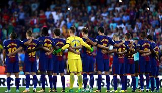 为了向巴塞罗那恐怖袭击案的遇难者表示缅怀,欧洲足坛在本周末的比赛前进行了默哀仪式,西甲联赛的球员们还在手臂上戴上黑纱,表示对遇难者的哀悼。作为巴塞罗那的旗帜和象征,巴萨俱乐部也在今夜同贝蒂斯的西甲首轮穿上了特制球衣。