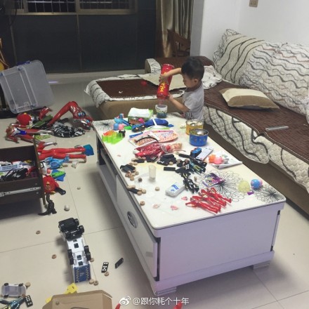 有了孩子以后,基本上家里没有一个地方是可以落脚的