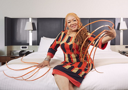 美国德克萨斯州休斯敦的指甲艺术家Ayanna Williams拥有全世界最长的手指甲,每个指甲长约0.6米,总长度超过5.49米,被收录进了2018年的吉尼斯世界纪录。23年前,Ayanna受到朋友的启发,开始留指甲。她每天都要用抗菌肥皂和指甲刷清洁指甲,还要定期使用硬化剂和薄层丙烯酸来促进指甲不断生长,而进行美甲则要花费一周的时间。对Ayanna来说,最大的挑战就是穿裤子。