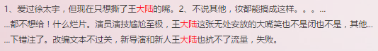 “尴尬”已不足以解愤,“垃圾”、“烂片”、“浮夸”等词也出来蹦跶了。和《深夜食堂》一样,点名批评最多的依然是主角。不过当小娱检索了“大陆”的关键词,发现骂的不是王大陆,而是他的嘴……