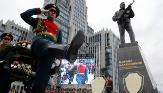 当地时间9月19日,在莫斯科市中心一条繁忙的街道上,一座高约8米的青铜人像雕塑正式落成。雕塑的主人公是被誉为“世界枪王”、“AK-47之父”的卡拉什尼科夫(Mikhail Kalashnikov)。在俄罗斯国歌、军歌以及东正教牧师祷告等背景音下,莫斯科为这座雕塑举办了盛大的落成仪式。