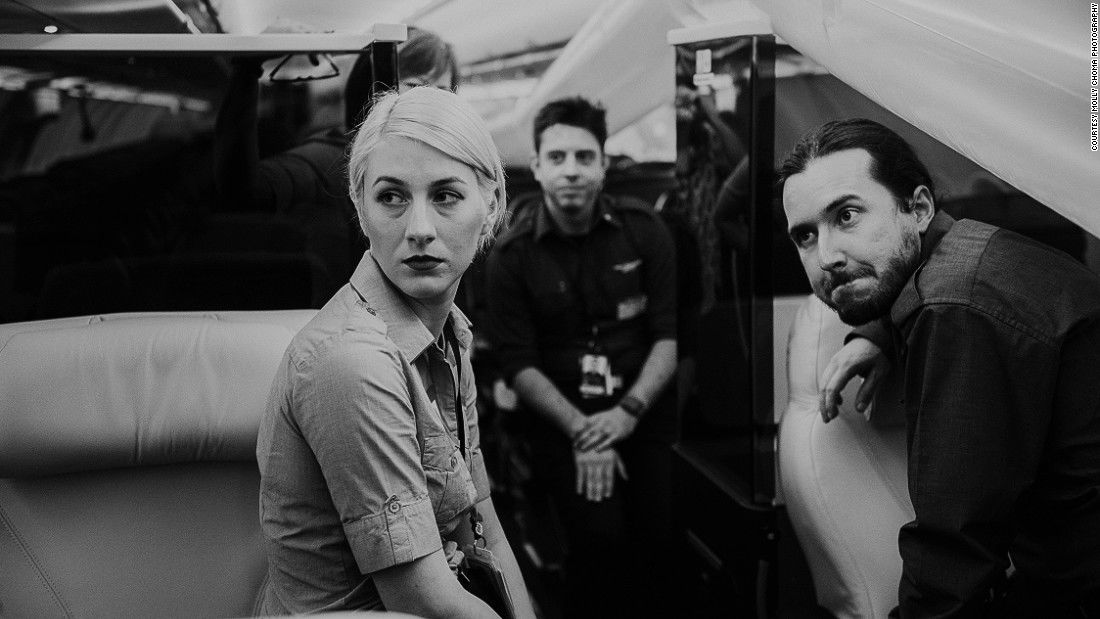 大多数公开的照片是在现场抓拍的,但有时Choma会在起飞前让同事们摆拍,重新演绎在航程中的一些工作场景。