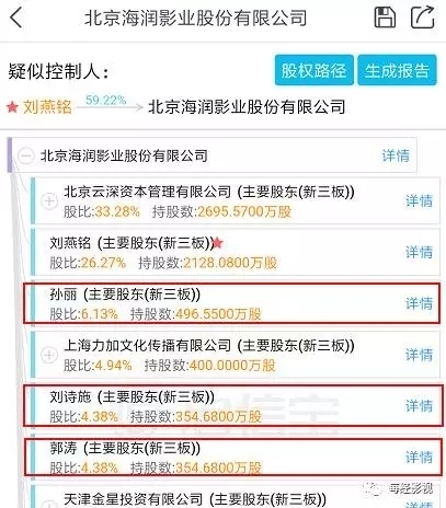 ▲海润影业部分股权结构(启信宝/图)
