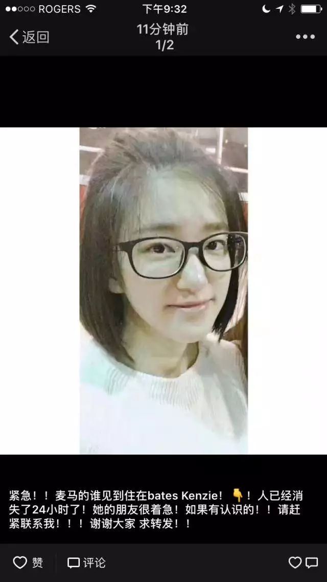 麦克马斯特大学的女留学生 Kenzie平安归来。