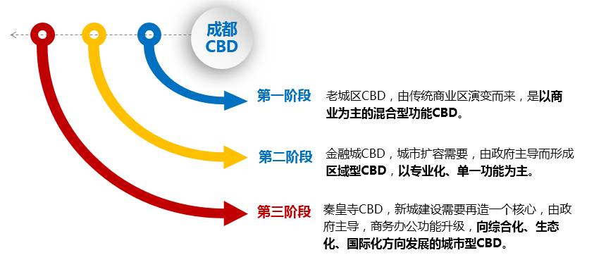 从成都老城区CBD的繁华、金融城CBD的发展,到秦皇寺CBD未来的崛起,成都CBD的发展经历了三个阶段。