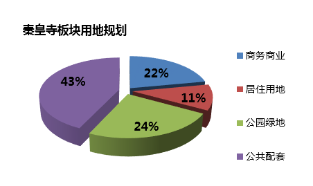 布局:规划面积约8平方公里,秦皇寺中央商务区将会用22%的土地用作的商务商业用地、11%居住用地、24%公园绿地,43%的土地用来建设公共配套。