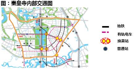 对内:区域内规划包括地铁1号南延线、6号、11号、18号以及19号线等5条地铁途径秦皇寺、多条有轨电车以及若干条快速通道与中心城区紧密相连。
