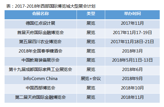 海关打造展会物资通关快车道 打开世界新窗口:2016年12月,毗邻西部国际博览城的天府新区海关开关运行,为新区企业提供一体化通关的便利,营造新区最优通关环境。在推动高端制造业集聚落户天府新区的同时,也为西部国际博览城的展会物资打造了通关快车道,推动会展经济更快、更好的落实。