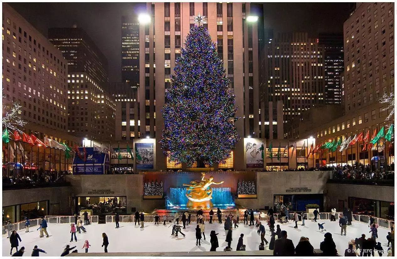 纽约曼哈顿洛克菲勒中心( Rockefeller Center)是一个由19栋商业大楼组成的建筑群,各大楼底层是相通的。这里餐厅、药店、理发店、银行、电影院、书店、溜冰场、音乐厅、购物中心样样齐全。