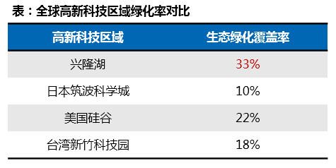 虽然生态花园式办公起源于西方,但对比世界知名高新科技区域绿化率后发现,兴隆湖生态绿化覆盖率已经跃居第一。将生态与高新科创产业极致融合的模式,将成为全球知名高新科创企业的向往之地,也将成为高新科技区域打造的模范标杆。