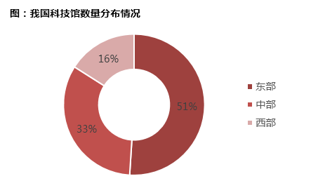 数据显示,我国科技馆数量分布不均,集中在东部,西部则是科技馆数量最少的区域。就成都来看,目前有5个科技馆,其中包含一个大型科技馆,4个中小型科技馆。分布于城北、城东和市中心。