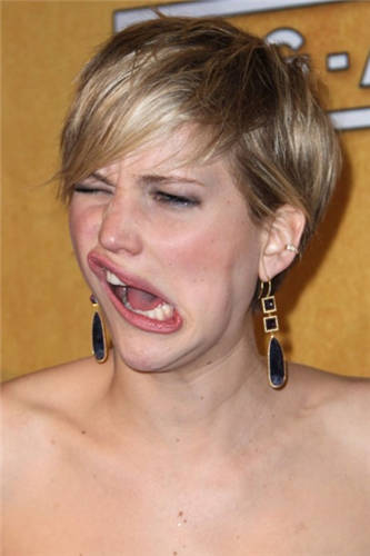 看看她穿着美美的礼服扮怪相的样子,你大概就会明白好莱坞女明星那么多,为什么她火遍了全球。