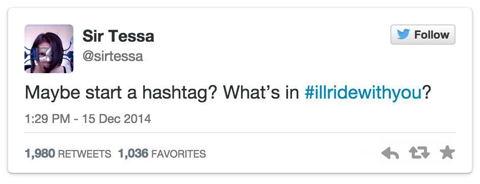 人质事件结束以后,#Iwillridewithyou的标签还在持续转发,点这里可以看见。