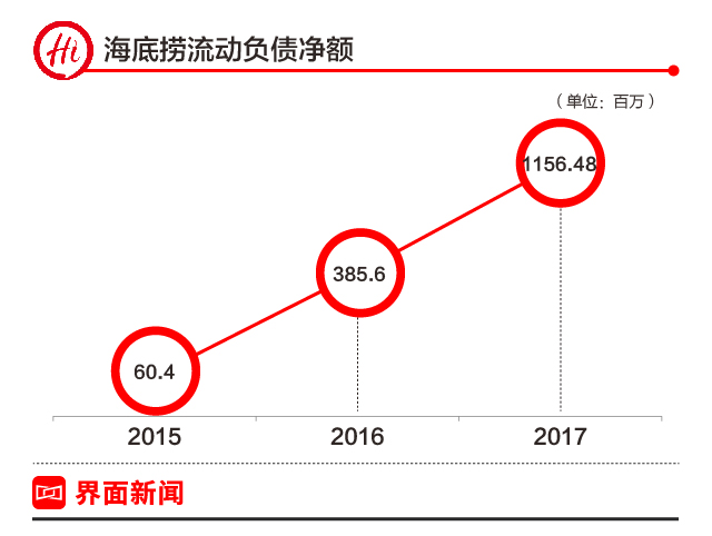 相比之下,海底捞简直就是赚钱的马达,但还不够,此次海底捞预计上市募资金的60%用于开店扩张计划。海底捞近两年扩张速度明显提升,门店数在3年间差不多翻了一番。招股书预计,2018年海底捞将开设180家-220家新餐厅,这同时会带来巨额流动负债,所以到资本市场融资可能是海底捞上市的主要原因。