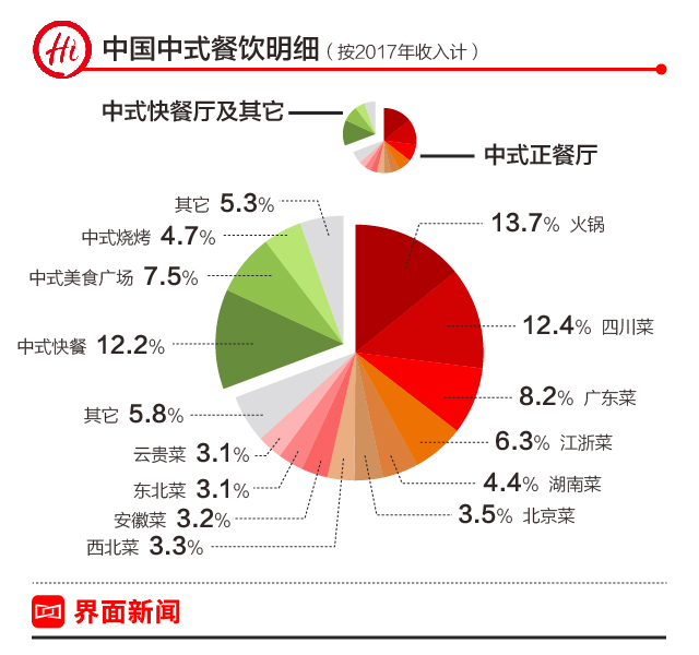 根据弗若斯特沙利文的统计,整个餐饮行业中,火锅餐厅的收入从2013年的2813亿人民币增加至2017年的4362亿,复合年增长率为11.6%。预计2017-2020年将持续按照10.2%的速度增长,是中式快餐中增长最快的部分。