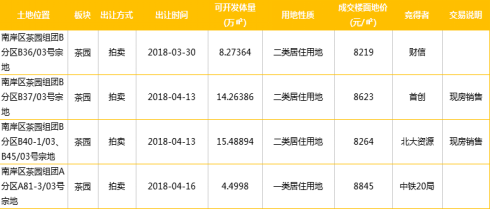 自茶园北被开发以来,市场上关于它的消息便不绝于耳,尤其是在今年上半年,茶园北几番拿地的价格,着实让该板块在业界名声大噪。2018年3月30日,财信竞得茶园B36/03地块,楼面价为8219元/㎡,首次突破八千大关;之后,大牌房企首创、北大资源、中铁十二局紧随其后,相继拿下“8”字打头的茶园北地块(数据来渝于重庆市公共资源交易网),这样的数字背后彰显的正是该板块的潜力与实力。