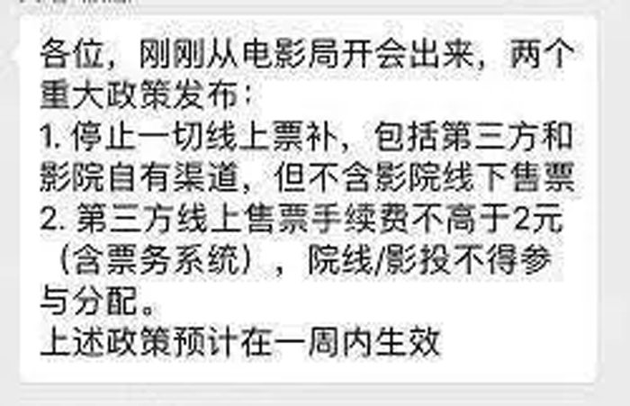 第一,停止一切线上票补行为,包括第三方和影院自由渠道,但不含影院线下售票;