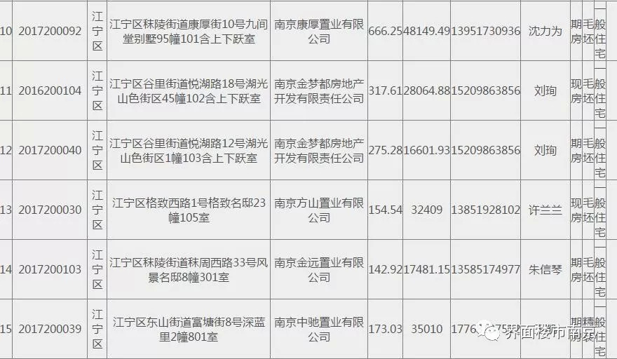 碧桂园湖光山色、鲁能泰山7号院此前也出现在8月退房名单上。鲁能泰山7号院已经收官且交付。江宁碧桂园湖光山色共产生2套退房,其中一套为面积275.28㎡的毛坯房源,单价为16601.93元/㎡,另一套价格较高,单价28064元/㎡,面积317.61㎡的跃层。由于面积较大,总价较高,预计购房者不多。