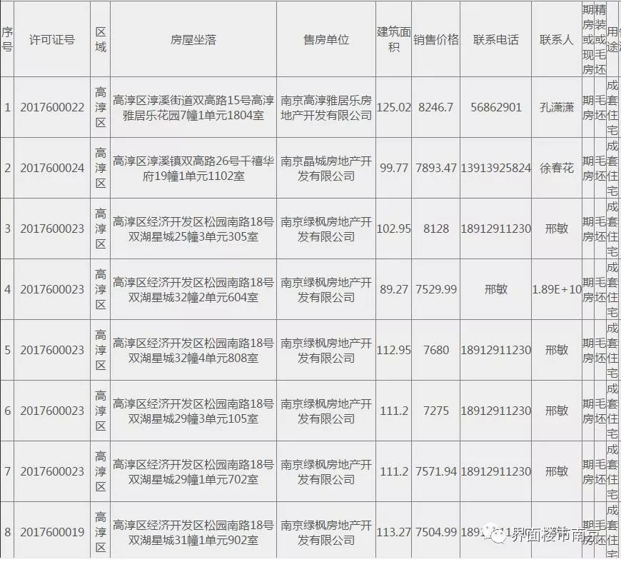 高淳此次有8套退房,其中双湖新城共计有6套,皆为同一购房者所退,高淳雅居乐花园、紫晶美域各有一套。价格都在7500—8200元/㎡。