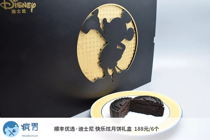 其实迪士尼月饼已经红了很多年了,其标志性的米奇LOGO和精美的包装,实在是骗女生和小孩子钱的利器,但实话说味道就很一般了。巧克力款的如果和前面的好时相比,就是一块加入了更多的淀粉而且放了更久的变形布朗尼而已。至于桑葚、杨枝甘露等,你可以想象为果酱馅心的小西饼。