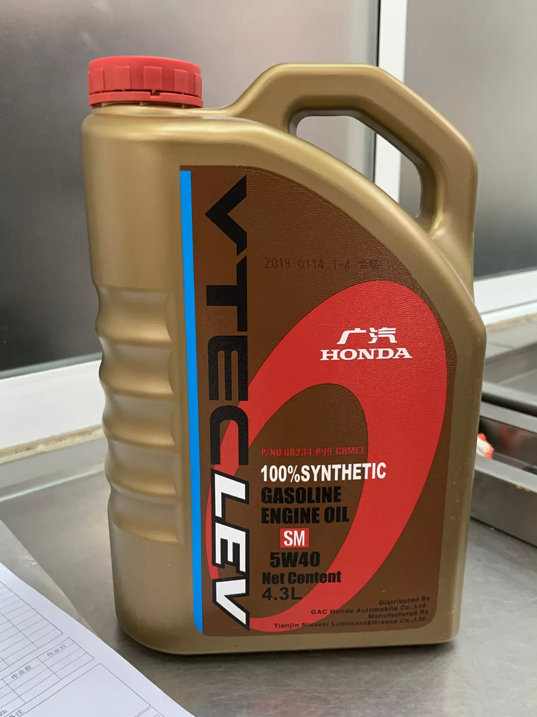 先看选用的原厂5W40机油。这货很神奇的是4.3L,据说是为歌诗图的机油量设计的。但是雅阁1.5T仅需用3.7L机油,后来还剩了些带走。