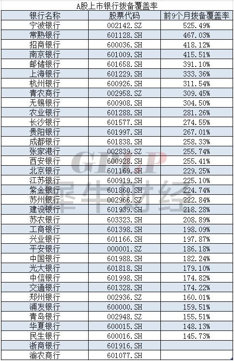 拨备覆盖率排名前3名分别为宁波银行、常熟银行(601128.SH)、招商银行(600036.SH);排名倒数3名的分别是民生银行(600016.SH)、华夏银行、青岛银行(002948.SZ)。