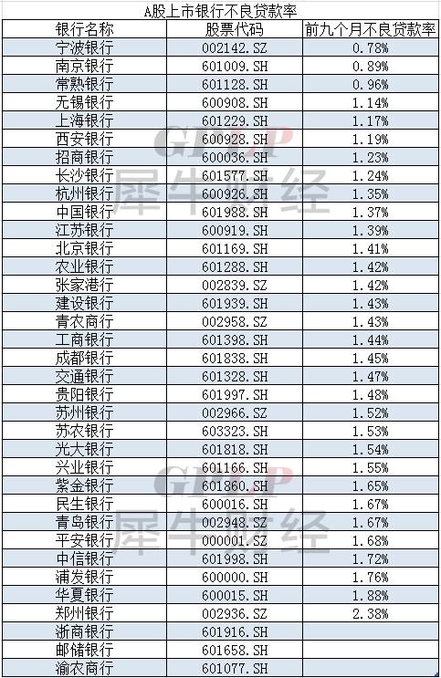 来源:三季报、同花顺(注:浙商银行、邮储银行、渝农商行未公布前九个月的不良贷款率,在评选的时候排名在外)