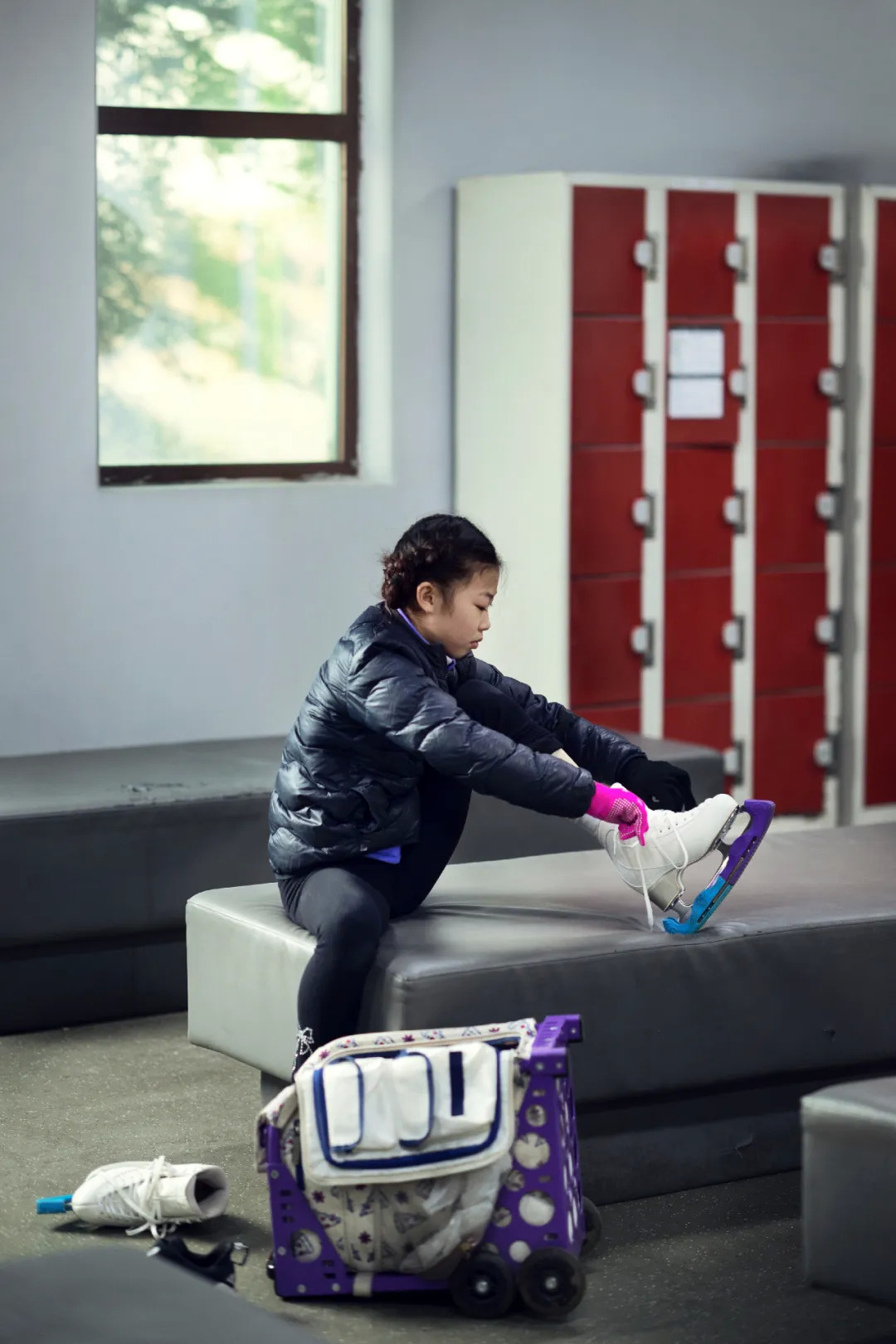 妮妮第一次上冰是在高碑店的浩泰冰场,之后,她开始像小蜜蜂一样在北京各个冰场间辗转,五彩城、大悦城、启迪……但商场的冰场更像游乐场,没有谁会和妮妮一样,为问鼎花滑赛场做准备。每到下午,商场里就人山人海,张爱君和安龙鹤不得不带妮妮转战他地;有时则是因为设备老旧,比如首体陈旧的制冷机一坏就坏十天半月,总无情收缴妮妮本就匮乏的训练场。