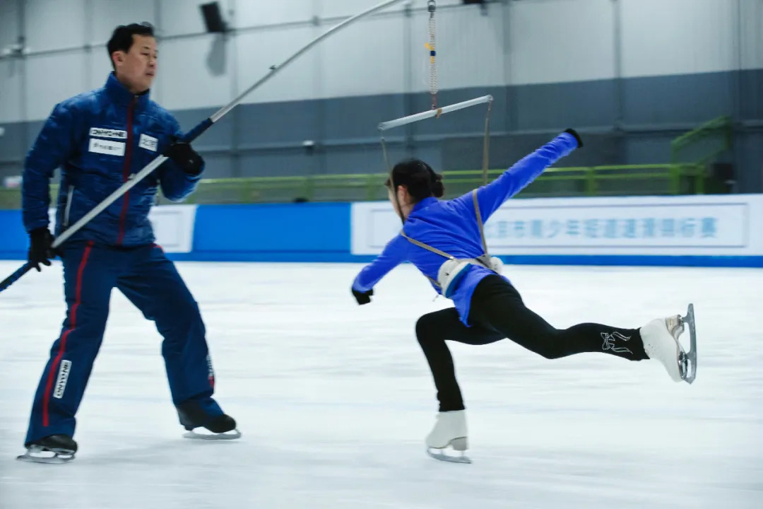 冰场上的其他人——手执教棍、表情松弛的教练,兴致勃勃学习滑行的小孩,偶尔经过的开着清冰车的大爷,对这对母女堪称极致的训练早已见怪不怪,但熟悉冰上运动的人知道,张爱君的想法绝非易事。